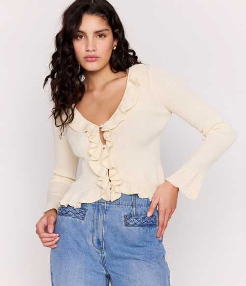 MINK PINK - Miracle Ruffled Cardigan - Ecru